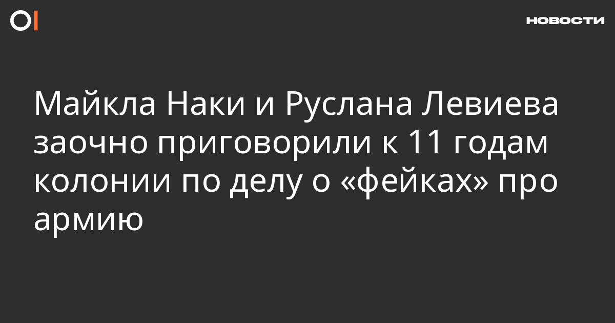 Басманный районный суд Москвы заочно приговорил журналиста Майкла Наки и основателя Conflict Intelligence Team Руслана Левиева к 11 годам колонии из-за видео, в котором они обсуждали ситуацию, сложившуюся на фронте на девятый день полномасштабного вторжения России в Украину. Об этом сообщают «Осторожно, новости».