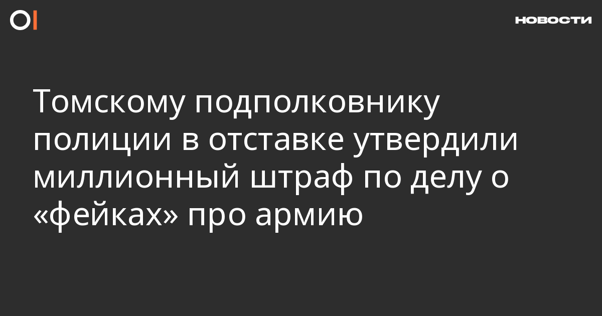 Томский областной суд утвердил миллион рублей штрафа отставному подполковнику полиции Виктору Лаврентьеву по делу о «фейках» про армию (ч. 1 ст. 207.3 УК). Информация об этом появилась на сайте суда.