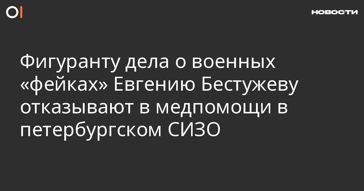 Фигуранту дела о «фейках» про российскую армию Евгению Бестужеву отказывают в медицинской помощи в петербургском СИЗО № 1 «Кресты». Об этом сообщает SOTA.