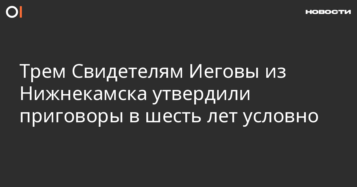 Верховный суд Республики Татарстан 8 декабря утвердил Свидетелям Иеговы из Нижнекамска Станиславу Ключникову, Дмитрию Ярчаку и Денису Филатову приговоры в шесть лет условно. Об этом сообщает портал «Свидетели Иеговы».