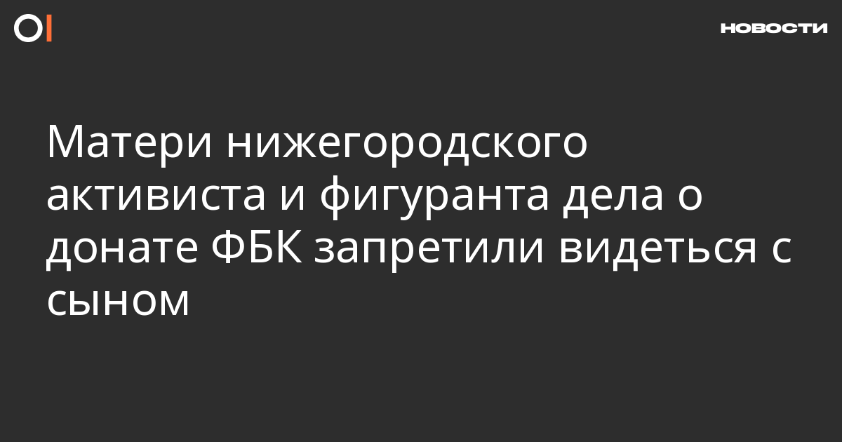 Людмиле Калинычевой, матери нижегородского активиста Глеба Калинычева, запрещают свидания с сыном: якобы это может способствовать сокрытию улик. Об этом пишет нижегородский телеграм-канал «Сорокин хвост» со ссылкой на постановление следователя.