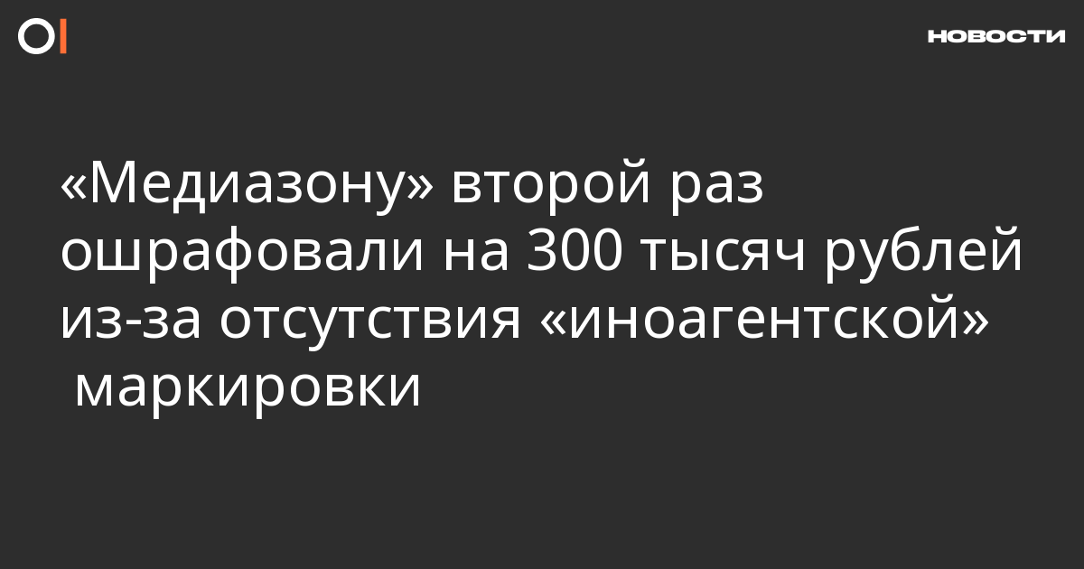 Басманный районный суд Москвы 20 декабря вновь оштрафовал ООО «ЗП», учредителя «Медиазоны», на 300 тысяч рублей из-за отсутствия маркировки «иностранного агента» (ч. 4 ст. 19.34 КоАП). Об этом сообщает само издание со ссылкой на пресс-службу суда.