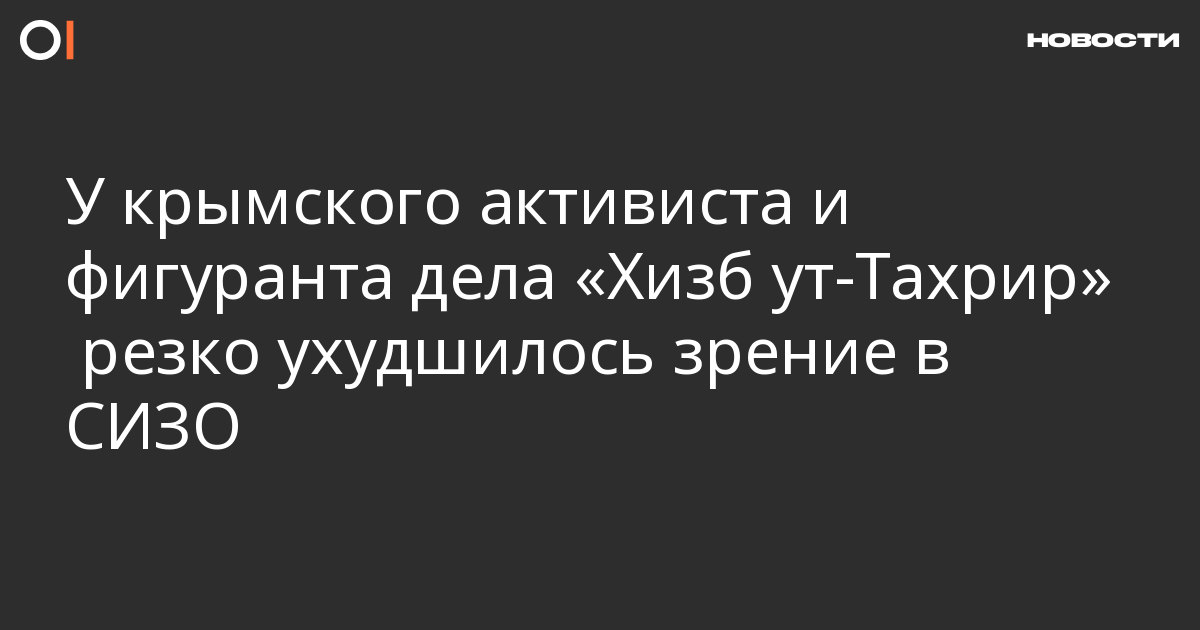 У крымского активиста и фигуранта дела «Хизб ут-Тахрир» Вилена Темерьянова резко ухудшилось зрение в СИЗО. Об этом «Крымской солидарности» рассказала его жена Эльмаз Газиева.