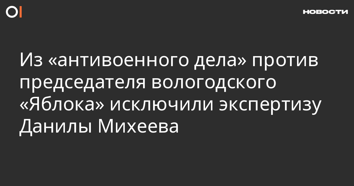 Великоустюгский районный суд Вологодской области на заседании исключил из дела против главы вологодского «Яблока» Николая Егорова о повторной дискредитации армии РФ (ч. 1 ст. 280.3 УК) экспертизу, проведенную Данилой Михеевым. Это передает адвокат от ОВД-Инфо Сергей Тихонов, представляющий интересы Егорова.