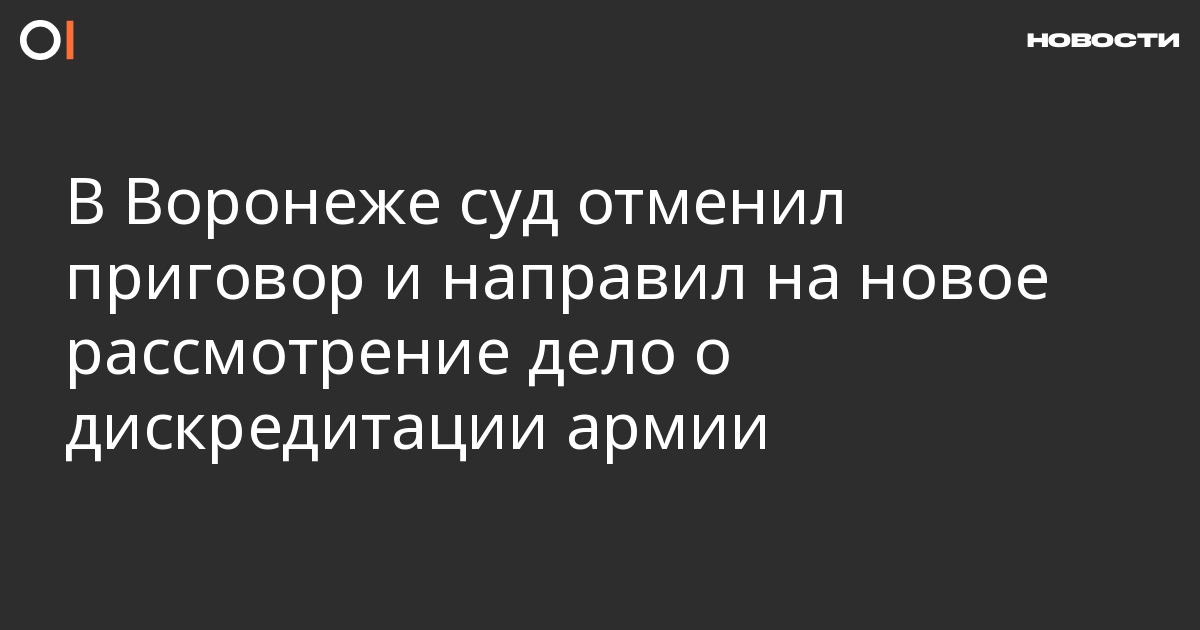 Воронежский областной суд 5 марта отменил приговор по делу 49-летнего жителя города Лиски Руслана Болгова о повторной дискредитации российской армии (ч. 1 ст. 280.3 УК) и направил его на новое рассмотрение. Информация об этом появилась в карточке дела.