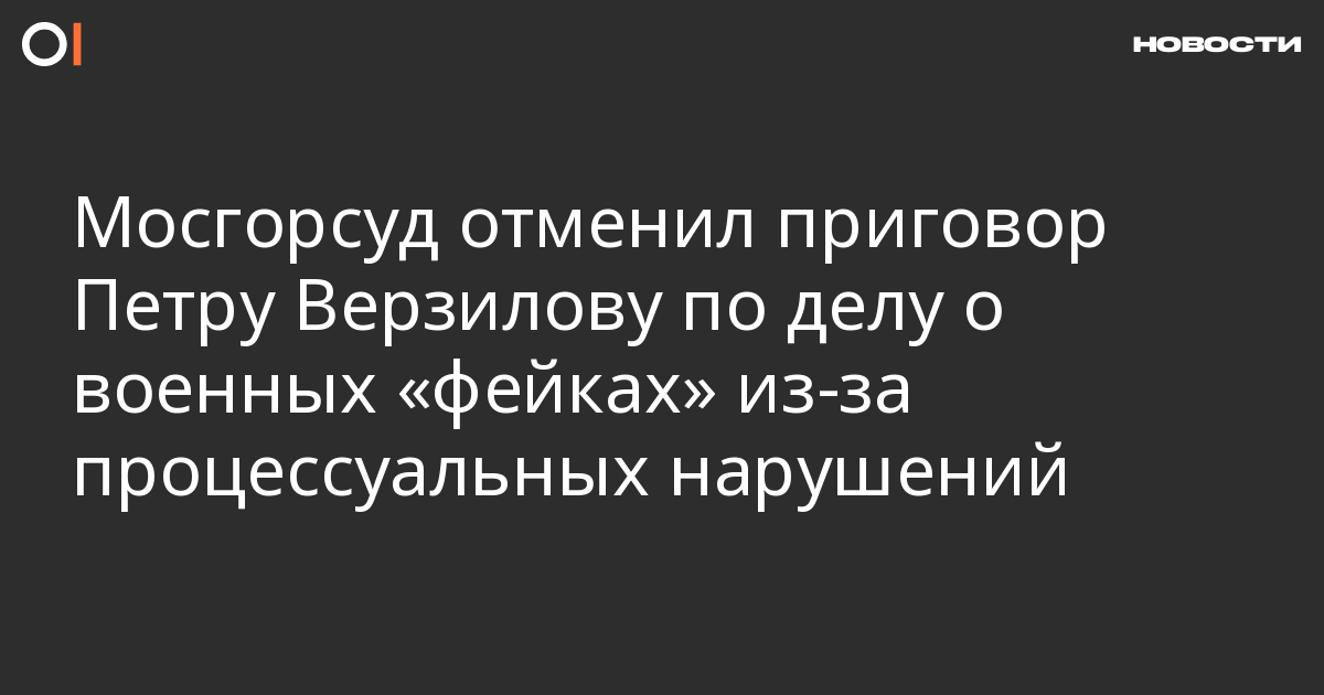 Московский городской суд отменил заочный приговор участнику Pussy Riot и бывшему издателю «Медиазоны» Петру Верзилову по делу о военных «фейках» (п. «д» ч. 2 ст. 207.3 УК). Об этом сообщают «Сетевые свободы».