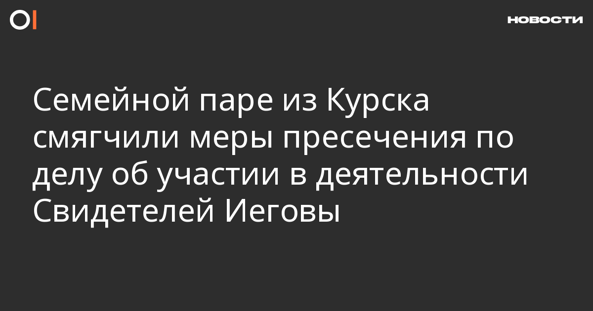 Суд в Курске смягчил меры пресечения супругам Дмитрию и Оксане Чаусовым, обвиняемым по делу об участии в деятельности экстремистской организации (ч. 2 ст. 282.2 УК). Заседание состоялось 28 февраля. Об этом пишет портал «Свидетели Иеговы. Юридическая ситуация в России».