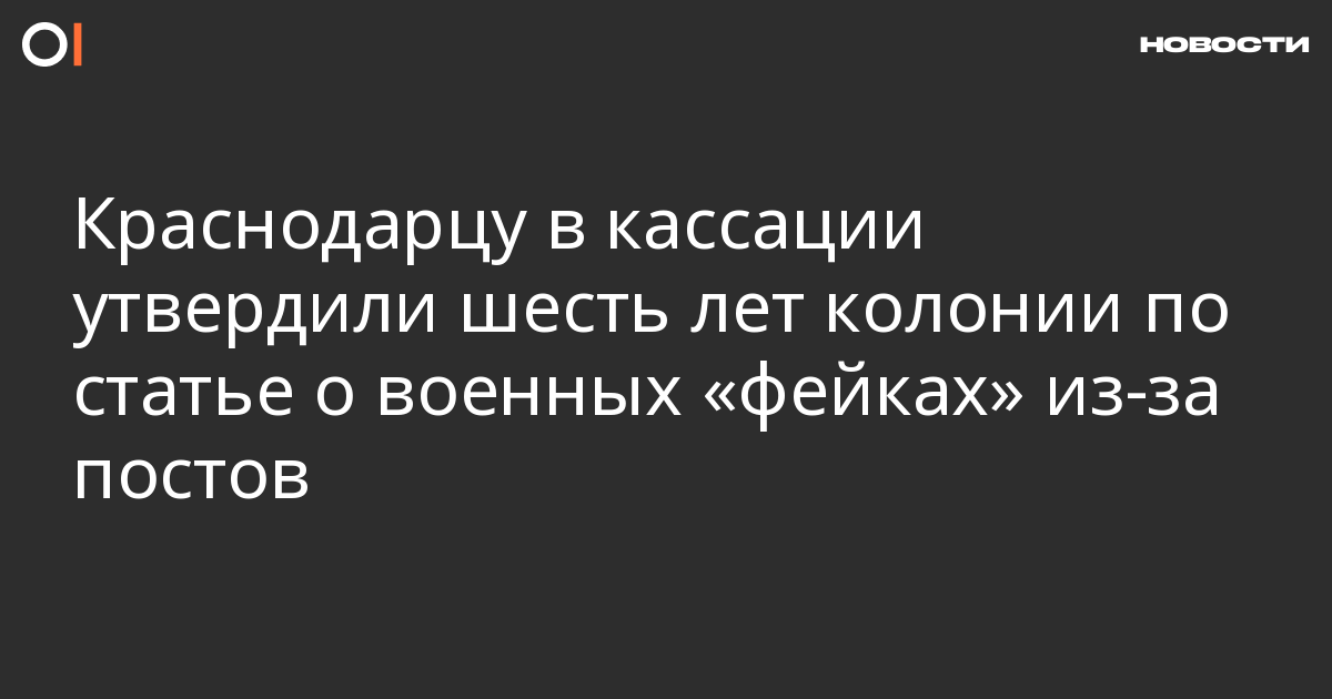Четвертый кассационный суд в Краснодарском крае утвердил приговор в шесть лет колонии общего режима местному жителю Александру Сомрякову из-за его публикаций про войну. Информация об этом появилась на сайте суда.