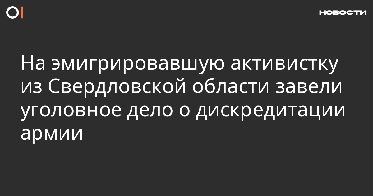 Против эмигрировавшей из города Реж Свердловской области активистки Алены Смышляевой 26 марта возбудили уголовное дело о повторной дискредитации армии (ч. 1 ст. 280.3 УК), написала Astra. Поводом стали антивоенные публикации женщины во «ВКонтакте».