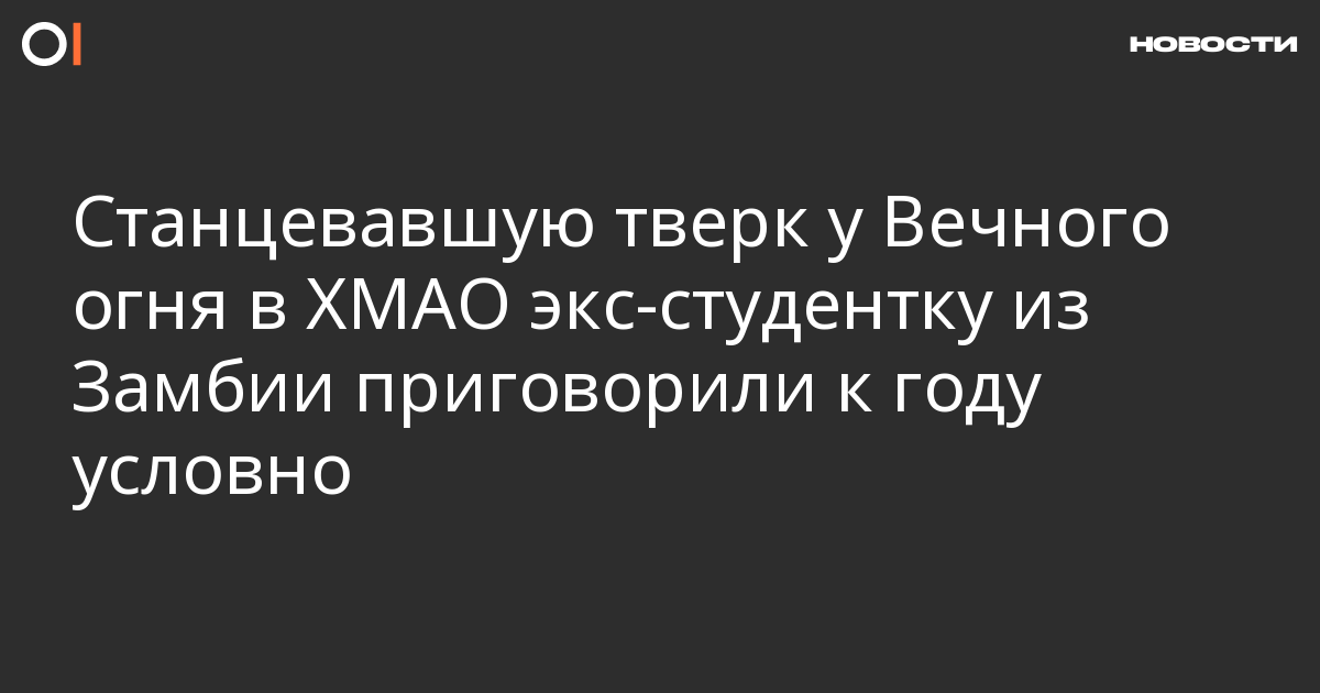 Суд ХМАО-Югры назначил экс-студентке из Замбии Тионге (Ребекке) Зибе год условно с запретом публикаций в интернете на год по делу об осквернении символа воинской славы России (ч. 4 ст. 354.1 УК) из-за тверка у Вечного огня. Об этом сообщили «Осторожно новости».