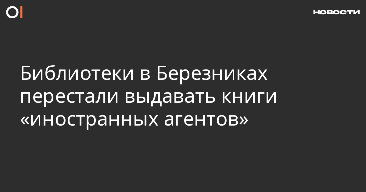 В городе Березники (Пермский край) местные библиотеки перестали выдавать книги, написанные «иностранными агентами». Об этом сообщает издание «7×7», а также телеграм-канал «Пермь 36,6 Против войны».