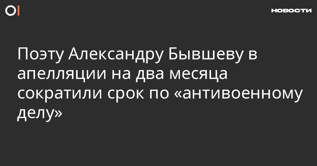 Апелляционный военный суд в Московской области смягчил приговор поэту Александру Бывшеву: с семи лет колонии общего режима срок сократили до шести лет и десяти месяцев. Об этом сообщает SOTA.