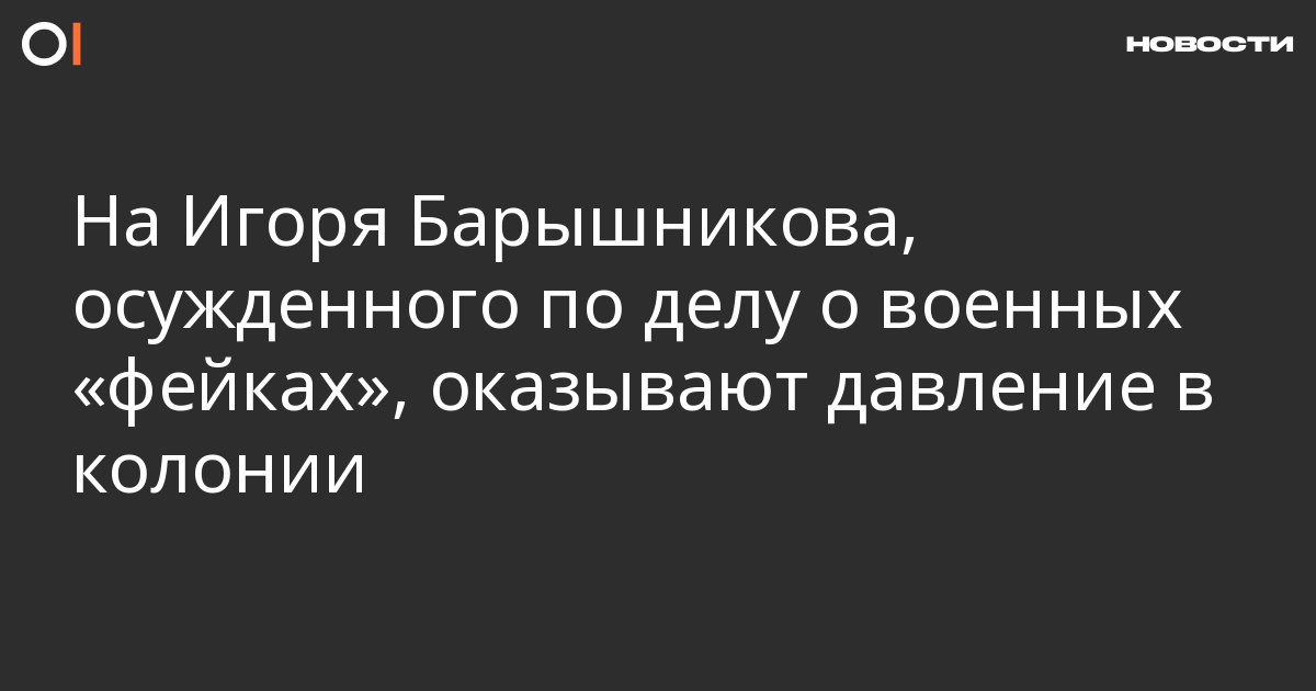 Игорь Барышников, осужденный на 7,5 лет колонии по делу о военных «фейках», рассказал о проблемах со здоровьем и давлении со стороны сотрудников ИК-8 Калининградской области. Об этом сообщает его адвокат от ОВД-Инфо Мария Бонцлер.