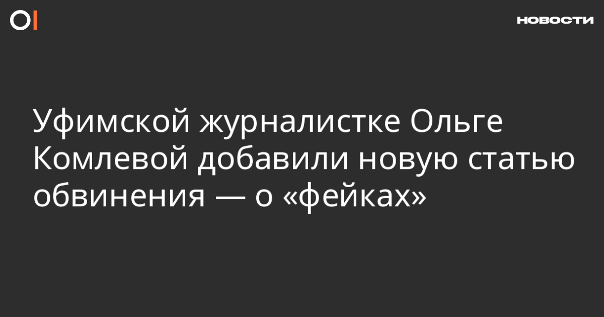 Уфимской журналистке Ольге Комлевой, преследуемой по делу об участии в ФБК (ч. 2 ст. 282.1 УК), добавили новую статью обвинения — о распространении военных «фейков» (п. «д» ч. 2 ст. 207.3 УК). Об этом сообщает «Медиазона».