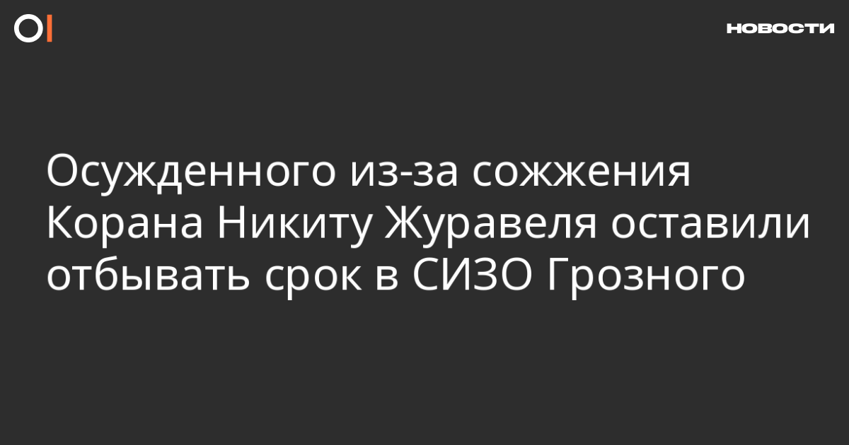 Осужденного из-за видео с сожжением Корана волгоградца Никиту Журавеля оставили отбывать приговор в СИЗО Грозного. Об этом со ссылкой на его адвоката сообщает V1.