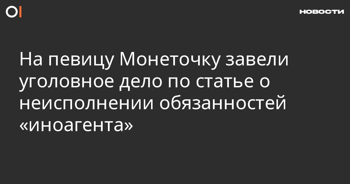 На певицу Монеточку (Елизавету Гырдымову) завели уголовное дело по статье о неисполнении обязанностей «иностранного агента» (ч. 2 ст. 330.1 УК). Соответствующую информацию опубликовали в телеграм-канале прокуратуры Москвы.