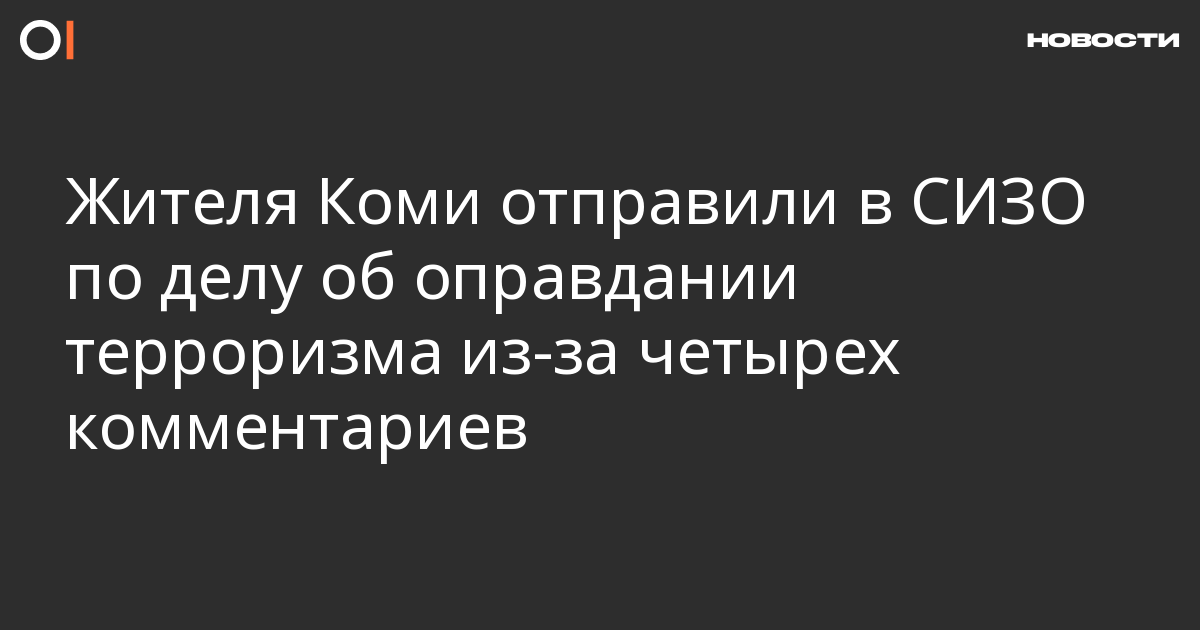 Против жителя поселка Нижний Одес (Коми) Алексея Соболева возбудили уголовное дело об оправдании терроризма в интернете (ч. 2 ст. 205.2 УК) из-за четырех комментариев об РДК и «Азове». Молодой человек находится в СИЗО. Об этом ОВД-Инфо сообщила мать Соболева.