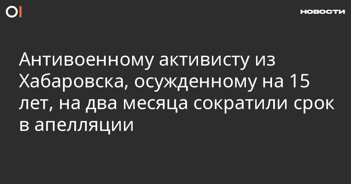 Апелляционный военный суд в подмосковной Власихе сократил до 14 лет и 10 месяцев срок лишения свободы антивоенному активисту из Хабаровска Ангелу Николаеву. Об этом сообщает «Говорит неМосква».