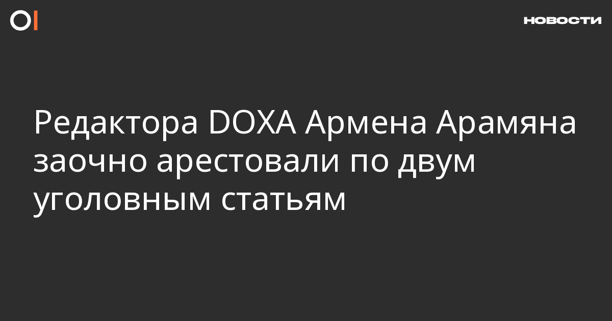 Басманный районный суд заочно арестовал редактора издания DOXA, экс-политзаключенного Армена Арамяна в рамках уголовного дела по двум статьям. Об этом сообщает «Медиазона» со ссылкой на своего корреспондента в зале суда.