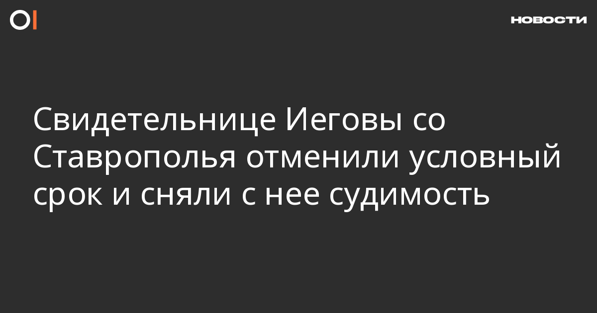Георгиевский городской суд Ставропольского края 19 августа отменил условный срок Свидетельнице Иеговы Ирине Гезик и снял с нее судимость, сообщает портал «Свидетели Иеговы. Юридическая ситуация в России».