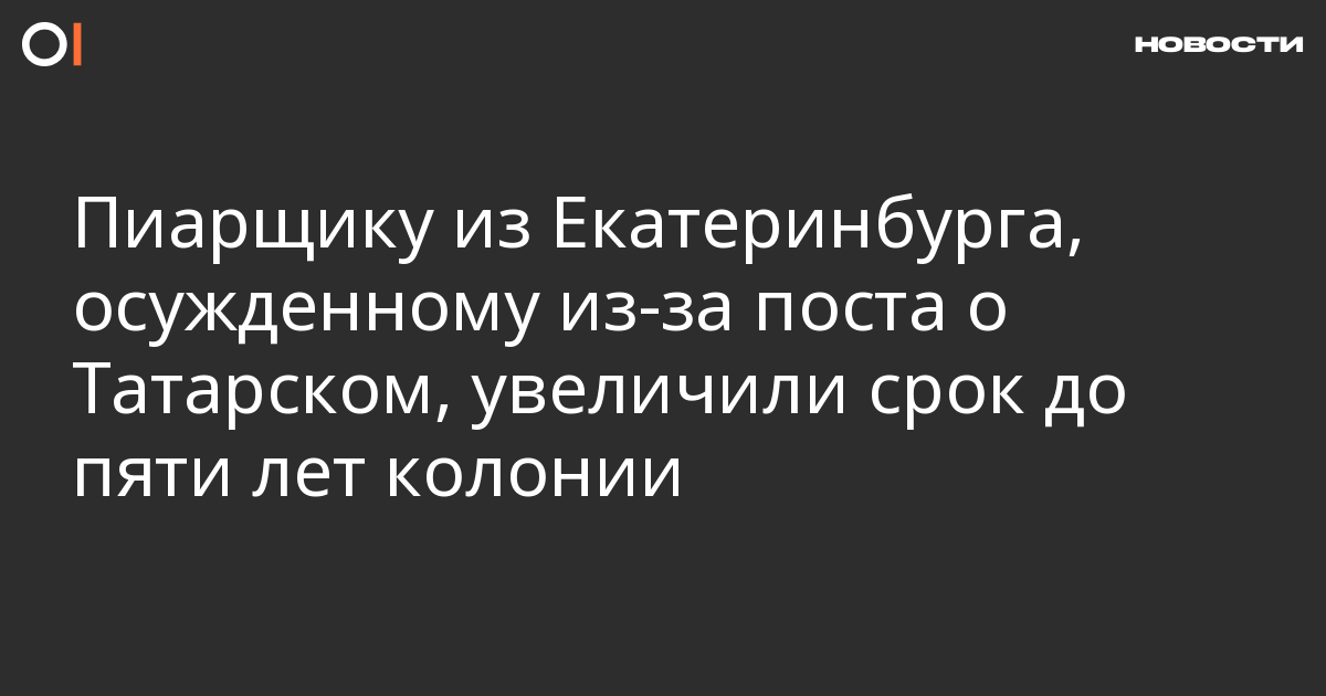 Апелляционный военный суд в Московской области ужесточил приговор пиарщику из Екатеринбурга Ярославу Ширшикову по делу о посте об убийстве военкора Владлена Татарского и увеличил ему срок до пяти лет колонии общего режима, сообщают «Вечерние ведомости».