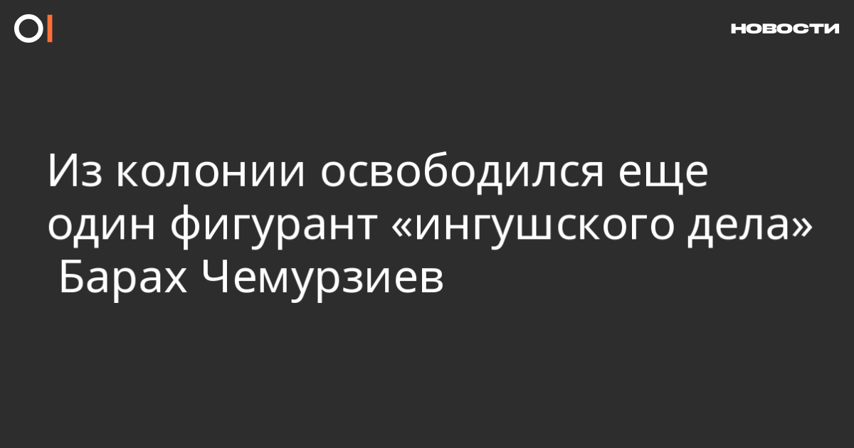 Из колонии вышел осужденный по делу о протестах в Ингушетии 2019 года Барах Чемурзиев, сообщает «Фортанга» со ссылкой на его близких.