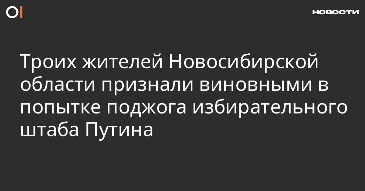 Жителей Новосибирской области Сергея Дементьева, Артема Жиленкова и Дмитрия Родькина признали виновными в попытке поджога избирательного штаба Владимира Путина в Барнауле. Об этом сообщает SOTAvision, а также пишет пресс-служба 2-го Восточного окружного военного суда.
