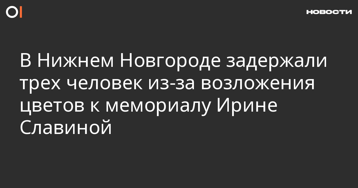 Полицейские в Нижнем Новгороде задержали местных активистов Людмилу Калинычеву, Павла Милославского и Илью Мясковского из-за возложения цветов к месту самосожжения журналистки Ирины Славиной. Об этом сообщает телеграм-канал «НПКК_инфо».