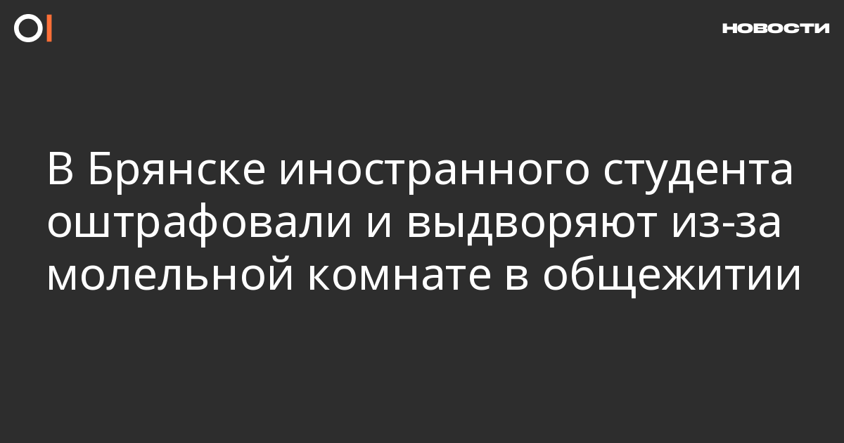 19-летнего иностранного студента оштрафовали на 30 тысяч рублей и приговорили к выдворению из страны из-за молельной комнате в общежитии, сообщили местные СМИ.