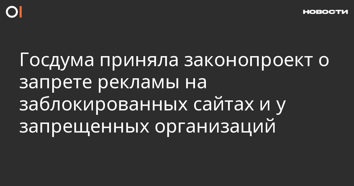 Госдума в третьем чтении приняла законопроект о запрете размещать рекламу на заблокированных сайтах, а также на сайтах организаций, признанных властями экстремистскими, террористическими или «нежелательными», передает РИА «Новости».