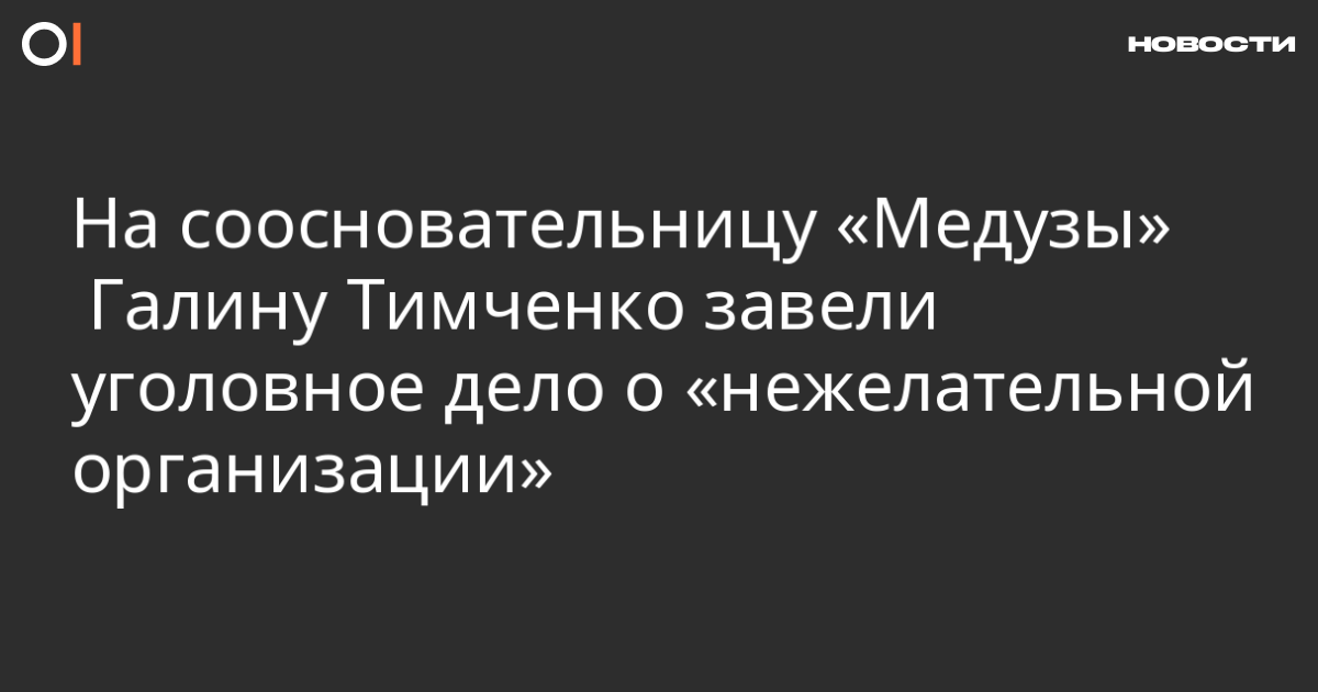 Против соосновательницы «Медузы» Галины Тимченко возбудили уголовное дело об организации деятельности «нежелательной организации» (ч. 3 ст. 284.1 УК). Об этом сообщает столичный СК.
