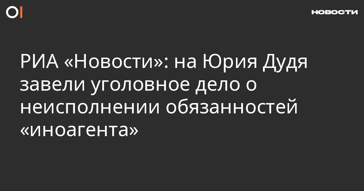 На журналиста Юрия Дудя завели уголовное дело о неисполнении обязанностей «иноагента» (ст. 330.1 УК), сообщает РИА «Новости» со ссылкой на источник в правоохранительных органах.