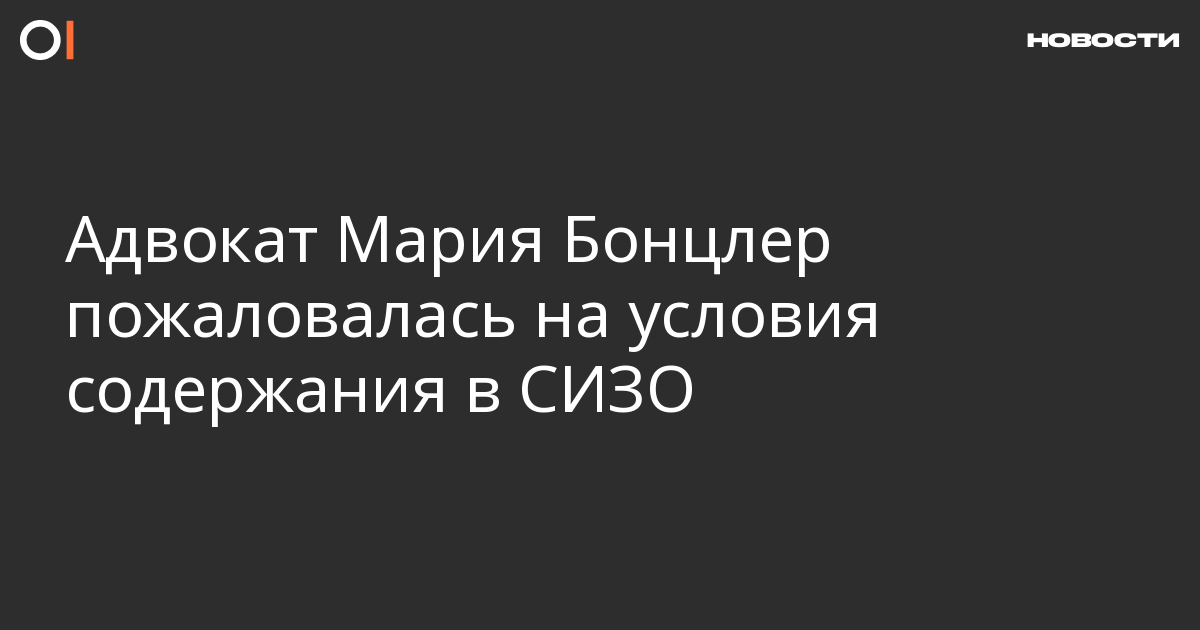 Адвокат Мария Бонцлер не получает медицинской помощи и необходимого количества воды в калининградском СИЗО-1. Об этом сообщает телеграм-канал «ЗПЧ» со ссылкой на ее адвоката Илью Сидорова.