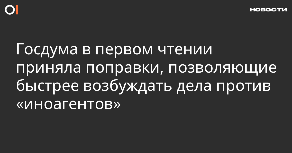 Государственная дума в первом чтении приняла поправки, позволяющие возбуждать уголовные дела против «иноагентов» после одного административного нарушения. Об этом сообщается на официальном сайте законодательного органа.