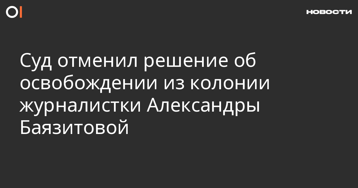 Сегодня Владимирский областной суд удовлетворил жалобу прокуратуры, которая просила отменить это решение и оставить наказание прежним, передает ТАСС. Баязитова, у которой диагностированы диабет, глаукома и гипертония, проведет в колонии еще около девяти месяцев.