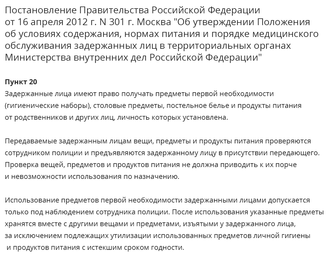 Что можно возить в передаче в ОВД, в каком количестве? Про спецприемник правила понятны — все написано у них на заборе и у тебя в специальном посте. А с ОВД как?