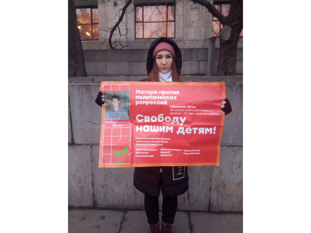 — Объединение называется «Матери против политических репрессий». Оно не называется «Матери политических заключенных». Хотим привлекать больше матерей, донести до общества, что эта проблема касается любой матери, любого ребенка, даже потенциальной матери. Хотим в будущем году привлечь к движению матерей, у которых, извините за выражение, детей еще не посадили. Мне кажется, люди должны понимать, что это может случиться с любым.