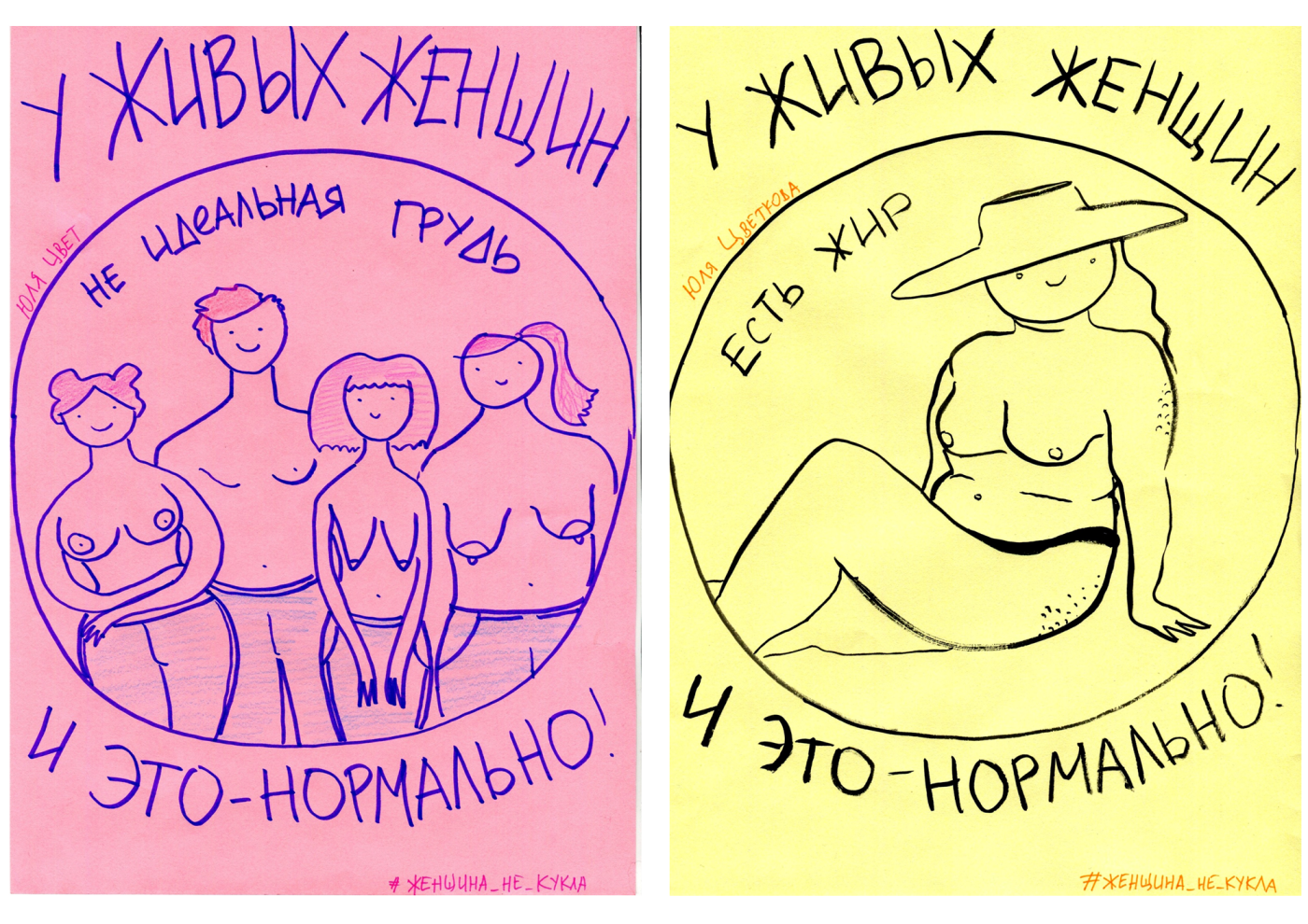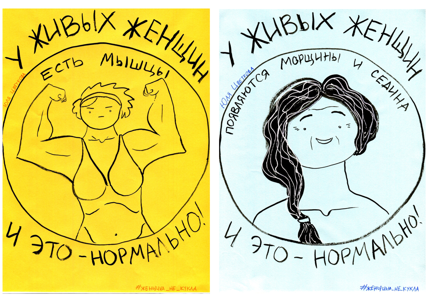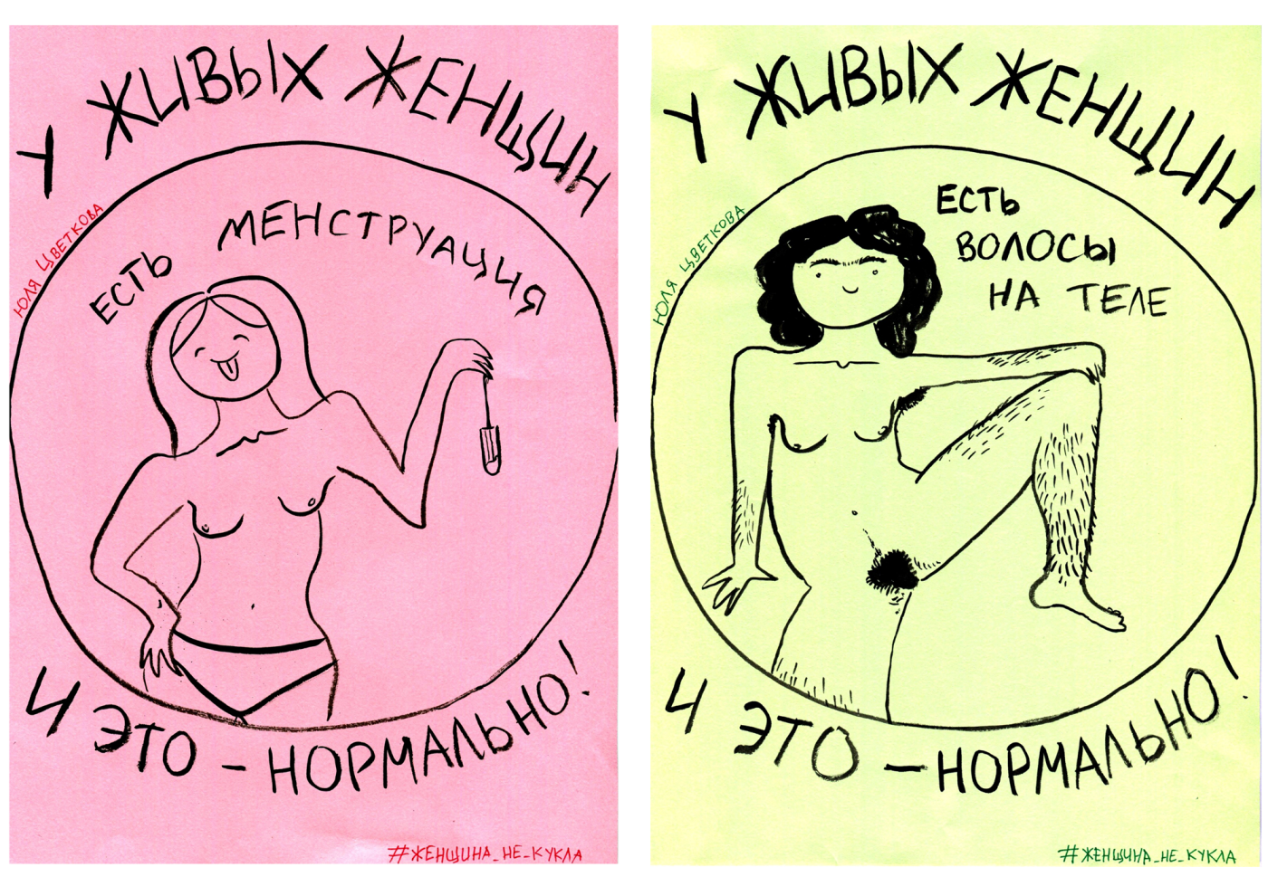 Знаете, проекты Юли «Монологи вагины» и «Женщина не кукла» — важнейшие проекты. Я сама научилась на них очень многому. Я очень долго не принимала себя. Смотря на Юлины картинки, я научилась принятию себя. Теперь я люблю себя в любом виде, в любой одежде, с любыми волосами. Мне сложно было поначалу смотреть ее паблик «Монологи вагины». Не то чтобы прямо сложно, но вот, знаете, как будто подглядываешь. И я стала думать, почему я смотрю на свой палец и не говорю ой-ой? Почему я смотрю на свою пятку и не говорю ой-ой? Почему я смотрю на свою вагину и должна говорить ой-ой? Только потому, что я ее не видела? Ну посмотри на свою вагину, зеркало возьми, нагнись. Это часть моего тела, я ей горжусь, я ее люблю, и, в общем, я не вижу в этом ничего плохого. Я счастлива, что сейчас все поднимают эту тему.