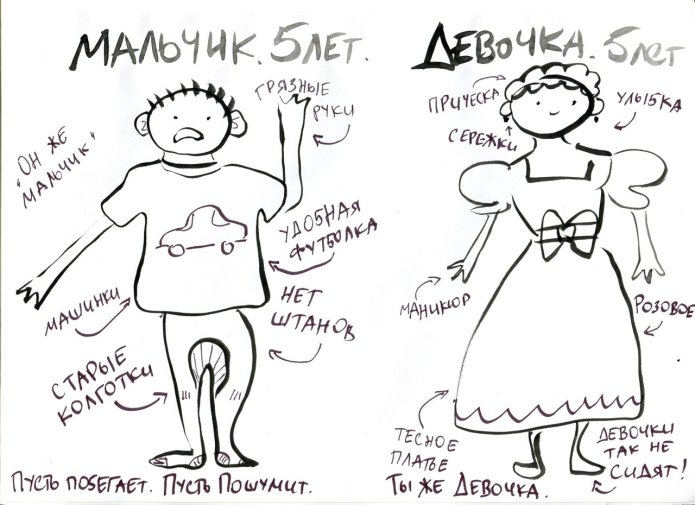 К спектаклю это вообще не имело никакого отношения. У нас дети рассказывали про себя, как в детском саду девочек дергают за косичку, как в школе говорят: «Ну он же мальчик, позволь ему списать».
