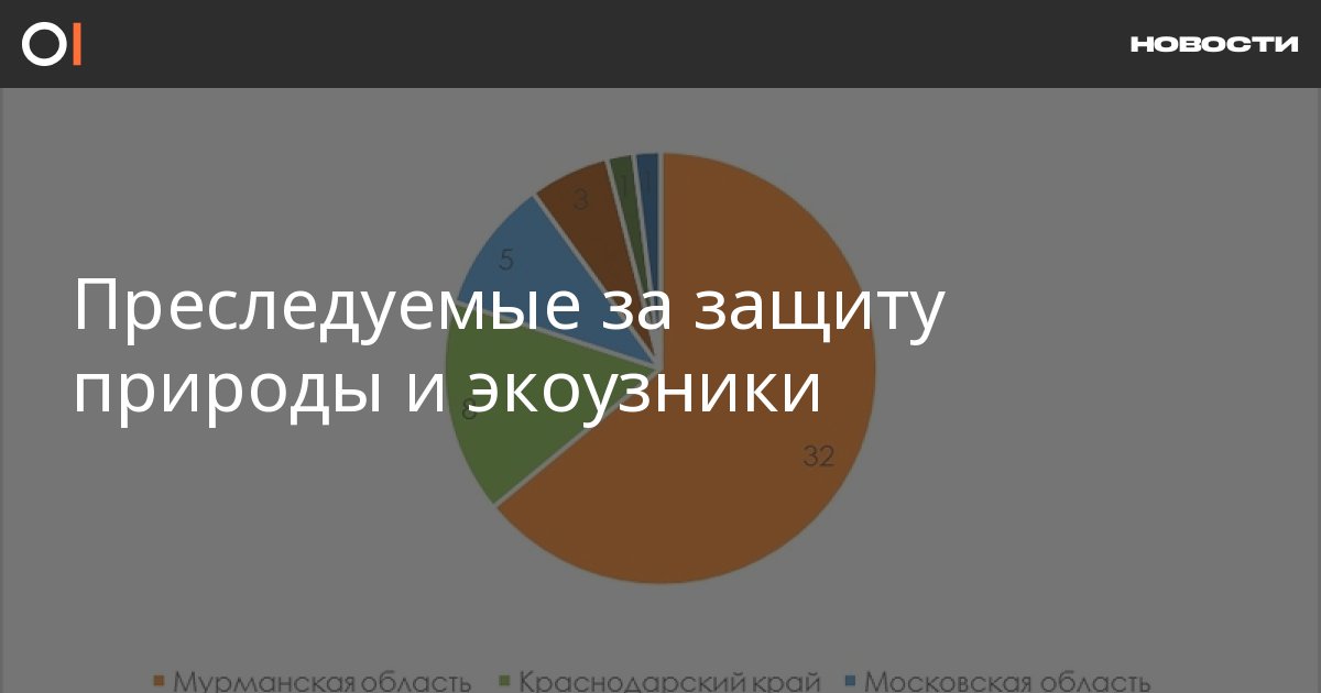 Лидирует в списке регионов Мурманская область, здесь зафиксировано 32 случая преследований. Серьезный отрыв от остальных пунктов списка (в занимающем второе место по количеству преследований Краснодарском крае — вчетверо меньше) объясняется просто: 30 из 32 случаев касаются истории с задержанием в Печорском море судна «Arctic Sunrise» и арестом находившихся на нем активистов «Гринпис» и членов команды — около двух месяцев все они находились в СИЗО Мурманска. Впрочем, и без учета громкой истории с задержанием международной группы экологов ситуация с преследованием защитников природы в Мурманской области выглядит довольно мрачно: два оставшихся случая — это убийство экологических активистов Николая Подольского и Сергея Малашенко. В 2013 году «Экоузник» зафиксировал три убийства экологов, третий — в Татарстане, где был застрелен Игорь Сапатов.