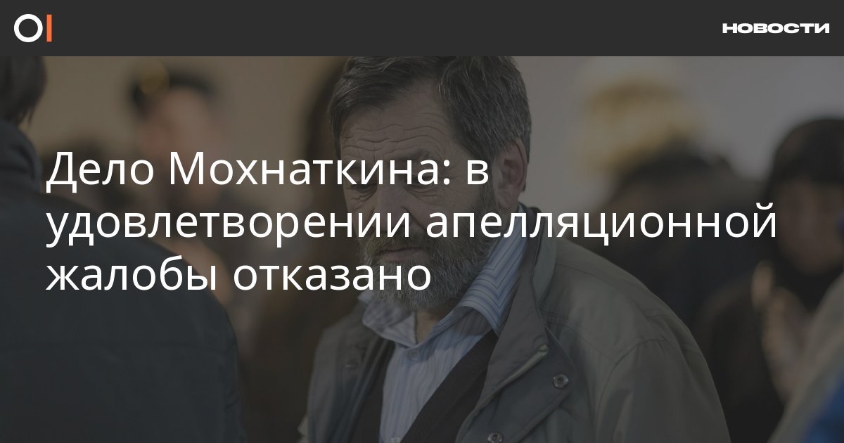 Московский городской суд, где сегодня состоялось рассмотрение апелляционной жалобы Сергея Мохнаткина на приговор Замоскворецкого суда, принял решение в жалобе отказать, оставив приговор без изменений. Об этом сообщает Алексей Кондратьев в Twitter. Заседание, изначально назначенное на 2 апреля, было перенесено на 10 часов сегодняшнего дня по ходатайству Мохнаткина для возможности конфиденциальной встречи с адвокатами, поскольку ранее встретиться с защитниками Мохнаткину не удалось — Каринна Москаленко не была допущена к своему подзащитному в СИЗО.