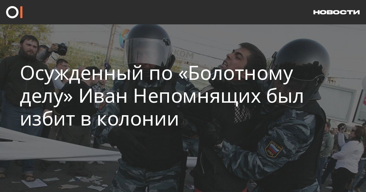 Осужденного по «болотному делу» Ивана Непомнящих, отбывающего наказание в ИК-1 по Ярославской области, избили в изоляторе колонии. Об этом ОВД-Инфо сообщил защитник Непомнящих Сергей Шаров-Делоне со ссылкой на уполномоченного по правам человека в Ярославской области Сергея Бабуркина.