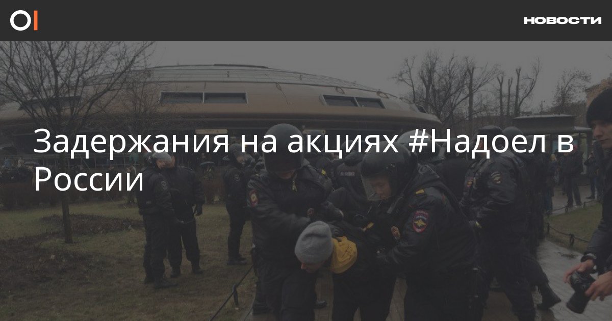29 апреля в разных городах России в разном формате проходят мероприятия в рамках акции #Надоел — митинги, пикеты, шествия, а также сборы людей у приемных администрации президента для передачи писем. Участников задерживают. Информация обновляется.