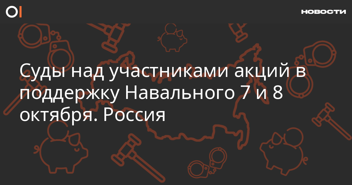 7 октября во многих городах России прошли акции в поддержку Алексея Навального. На них были задержаны около 300 человек. Мы публикуем информацию о результатах судебных процессов над задержанными на акции или в связи с ней.