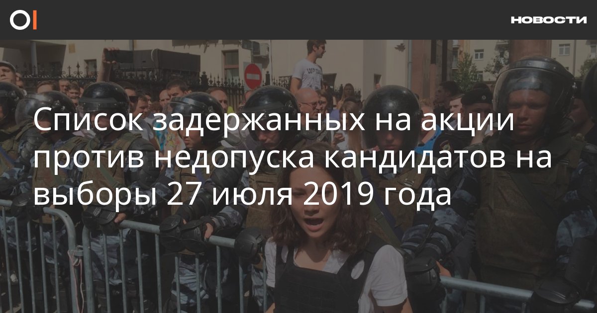 По данным на вечер 28 июля, полиция задержала более 1373 участников акции против недопуска кандидатов на выборы в Мосгордуму. Задержания начались у мэрии Москвы, затем участники переходили в другие места города, задержания продолжались. ОВД-Инфо публикует список задержанных, дополненный информацией об ОВД, в которых им пришлось ночевать.