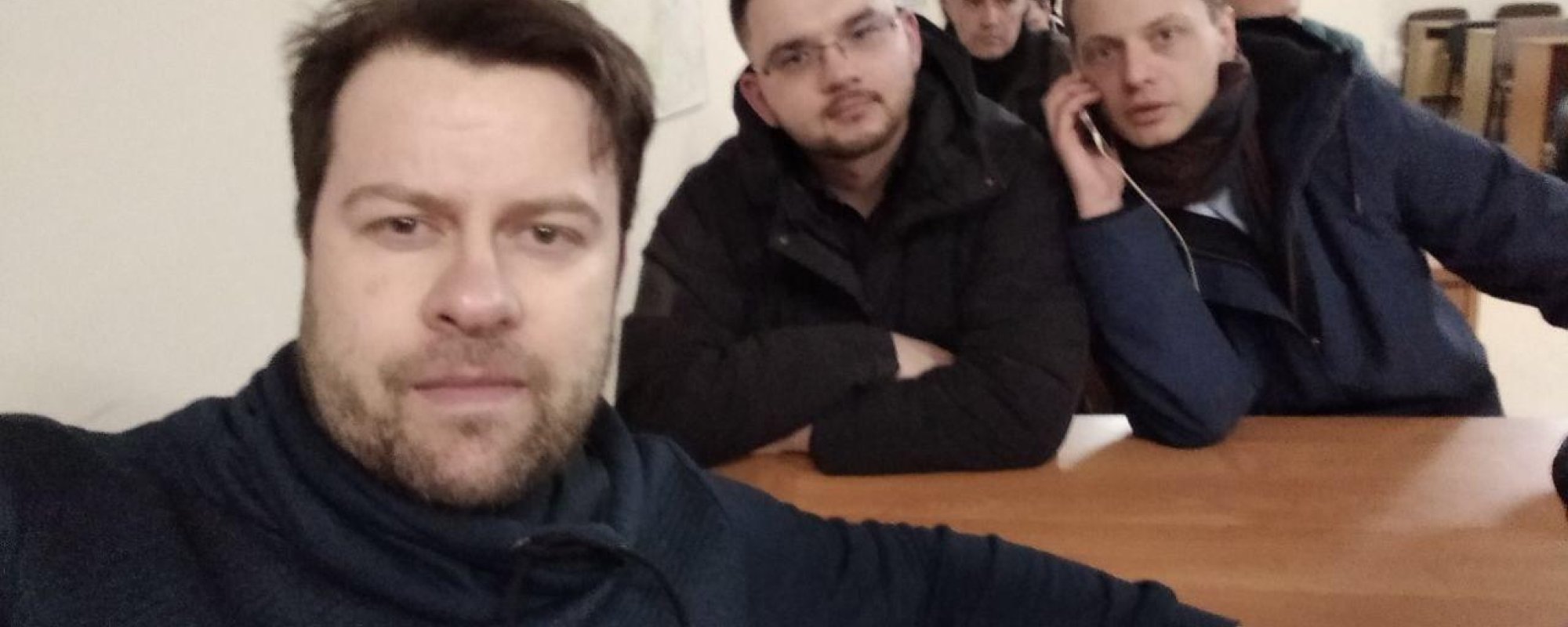 В отдел не пускают адвоката от ОВД-Инфо Дмитрия Захватова.
