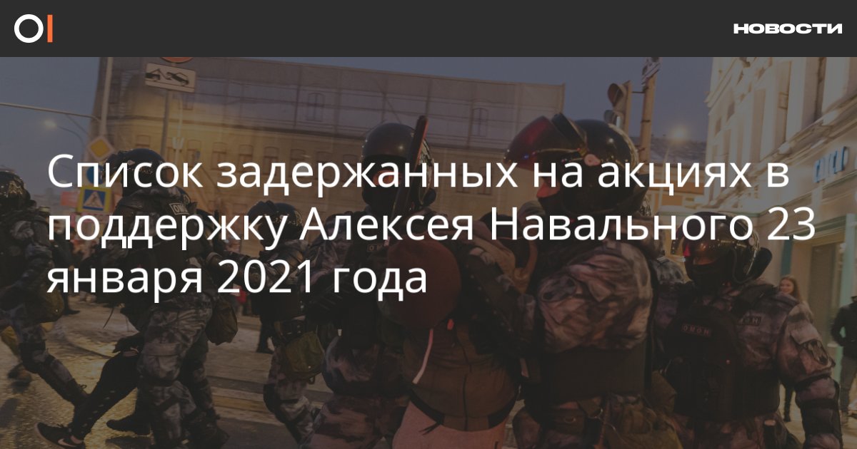 23 января во многих регионах России проходят протесты против ареста оппозиционера Алексея Навального и за прекращение его преследования со стороны государства. Участников акций задерживают полицейские. ОВД-Инфо следит за происходящим на акциях и публикует списки задержанных. По данным на 30 января, задержали более 4000 человек. Информация обновляется.