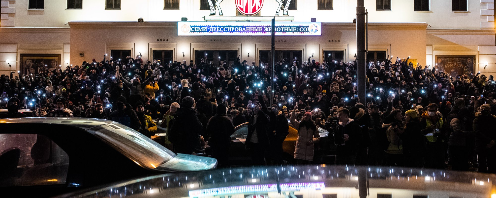 Протестующие с включенными фонариками на телефонах, 23 января 2021 год, Москва / Фото: Евгений Фельдман для «Медузы»