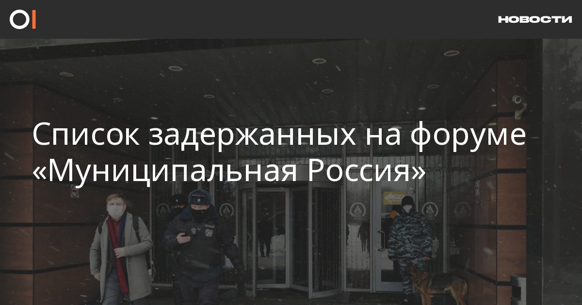 На форум «Муниципальная Россия» в Москве, организованный проектом «Объединенные демократы», пришла полиция. По данным на 21:30, задержали более 190 человек. Публикуем список задержанных. Информация обновляется.