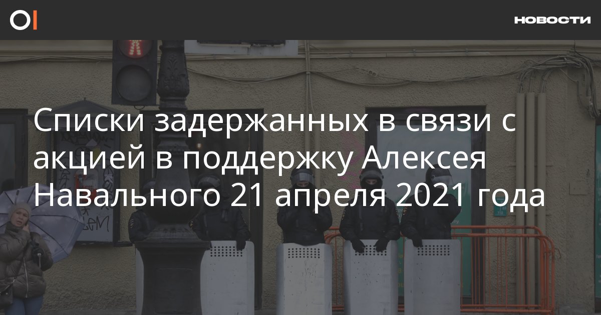 21 апреля во многих городах проходят акции в поддержку Алексея Навального, который держит голодовку, находясь в заключении во Владимирской области. Публикуем списки задержанных.